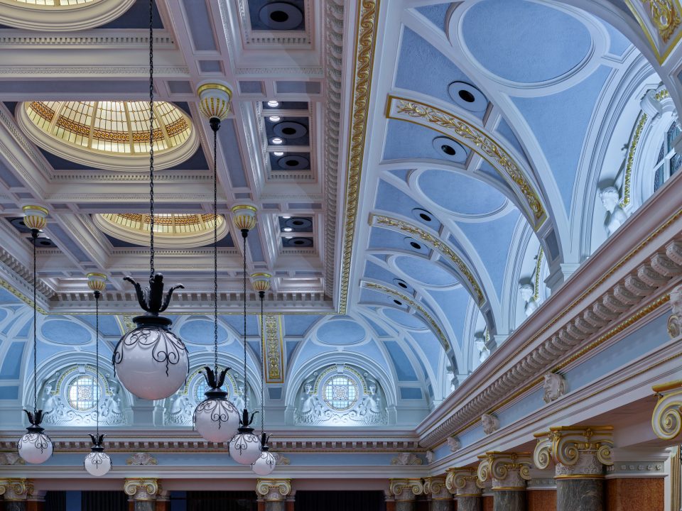 The previous lighting system dates to the 1970’s and consisted of halogen and fluorescent fixtures. The upgraded LED system respects the heritage aspect of the building where fixture positions could not be altered. The product selection and performance specifications were critical to maximizing the functionality and aesthetics of the space. False skylights backed by the unilluminated attic space required significant care to create uniform lighting that mimicked natural daylight using the automated colour-tuning system. Dome light fixtures were connected to a colour and intensity sampling sensor placed on the building’s exterior to automatically adjust the fixtures’ colour temperature to match the exterior light’s colour temperature. Lighting controls that once had to be manually adjusted now have the capability to automatically turn on, dim, turn off, or white tune, which saves energy, time, and resources. The control system’s multiple zones highlight architectural features and allow maximum flexibility.