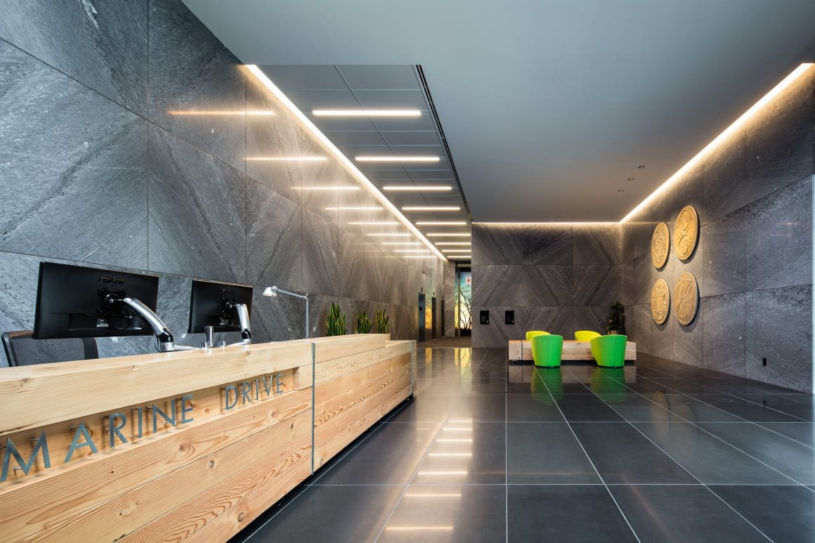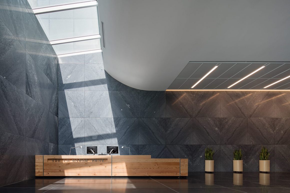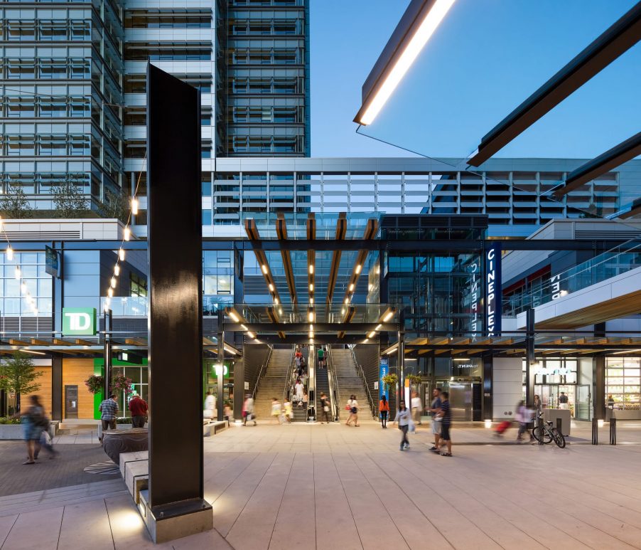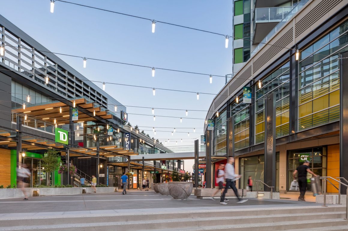 One of Vancouver’s newest community Marine Gateway is a LEED Gold® transit-oriented, mixed-use development that anchors South Vancouver’s neighbourhood town centre and serves as a vibrant, safe and complete community. Marine Gateway is a remarkable example of forward-thinking city-building, combining direct transit integration of two major transit hubs (Marine Drive Station on the Canada Line and the South Vancouver Bus Loop) with over 240,000 SF of multi-storey retail, a 14-storey office building, 461 residential homes) and a stunning public realm space. Two dynamic light art installations are integrated into the facades.